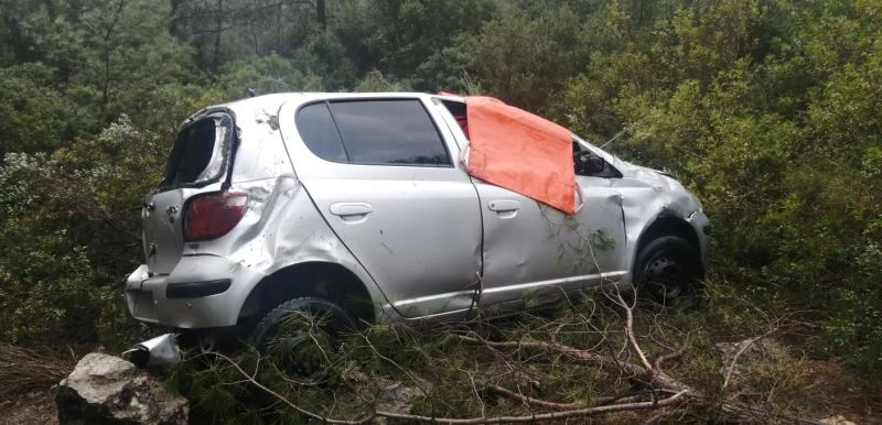Şarampole devrilen otomobildeki 3 sağlık çalışanı yaralandı
