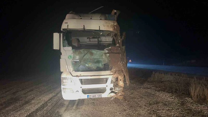 Afyonkarahisar’da kontrolden çıkan tır şarampole devrilirken, 2 kişinin yaralandığı kazada tırın dorsesi parçalandı.
