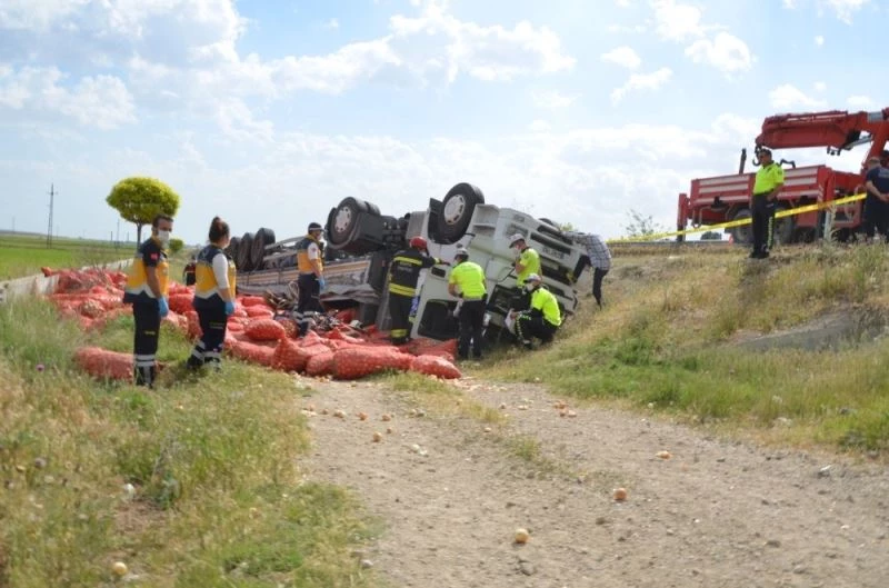 Konya’nın Ereğli ilçesinde kontrolden çıkan soğan yüklü tırın şarampole devrilmesi sonucu meydana gelen trafik kazasında, tır sürücüsü hayatını kaybetti.