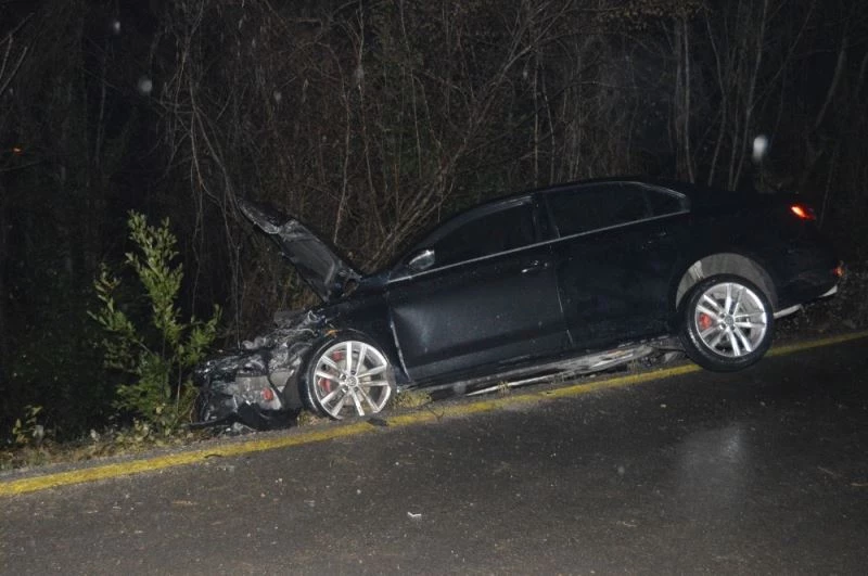 Bartın’da kontrolden çıkan otomobil karşı şeritten gelen hafif ticari araca çarptı. Hafif ticari aracı şarampoldeki ağaç dalları tuttu. Kazada 2 kişi yaralandı.