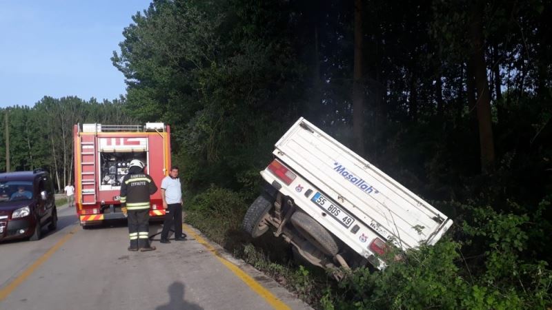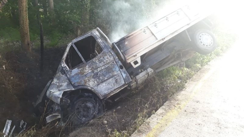 Alınan bilgiye göre, Terme-Hüseyinmescit grup yolunda seyir eden Engin K.’nin kullandığı 55 BDS 49 plakalı kamyonet, sürücünün direksiyon hakimiyetini kaybetmesi sonucu şarampole yuvarlandı. Kaza sonrası alev alan araçtan sürücü Engin K. kendi imkanlarıyla çıktı. Yoldan geçen diğer araç sürücüleri durumu 112 ve itfaiyeye bildirdi. Olay yerine gelen Samsun Büyükşehir Belediyesi itfaiyesi ekipleri yangını kısa sürede kontrol altına alarak soğutma çalışmalarını tamamladı.