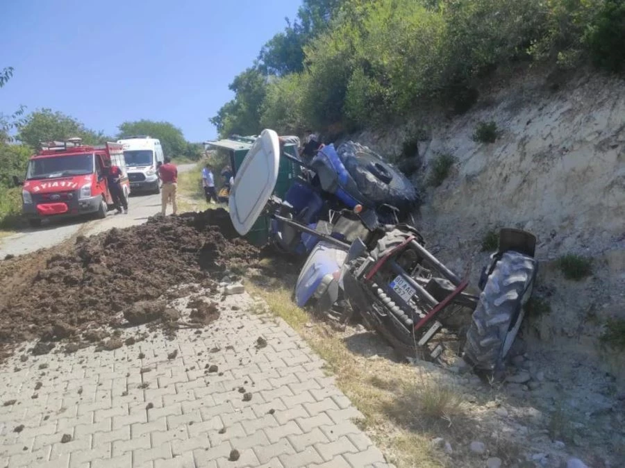 Şarampole devrilen traktörün sürücüsü yaralandı