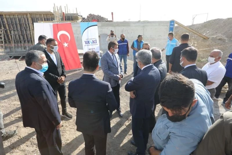 VASKİ Genel Müdür Yardımcısı Gezgen; il merkezi, ilçe ve kırsal kesimlerde aciliyet arz eden yerleşim yerlerinde altyapı çalışmalarına hız verdiklerini kaydederek; Saray ilçesindeki 300 metreküplük su deposunun ekonomik ömrünü tamamladığını ve kapasite olarak ilçe halkının ihtiyacını karşılamadığından dolayı VASKİ Plan Proje ve Yatırım İnşaat Dairesi Başkanlığının “2021 1.Etap İçme Suyu ve Kanalizasyon Yatırım Programı” kapsamında 1.6 milyon TL’lik yatırım bedeliyle 700 metreküplük yeni içme suyu deposu ve su sondajı kuyusu yapım işini başlattıklarını ve çalışmaların devam ettiğini belirtti. Yeni içme suyu deposunun devreye alınmasıyla ilçenin tamamının içme suyu ihtiyacının karşılayacağının altını çizen VASKİ Genel Müdür Yardımcısı Gezgen, deponun iki ay içerisinde tamamlanarak hizmete alınacağının da müjdesini verdi.