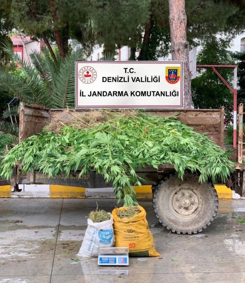 Sarayköy’de 13 kilo esrar, 1300 kök kenevir yakalandı