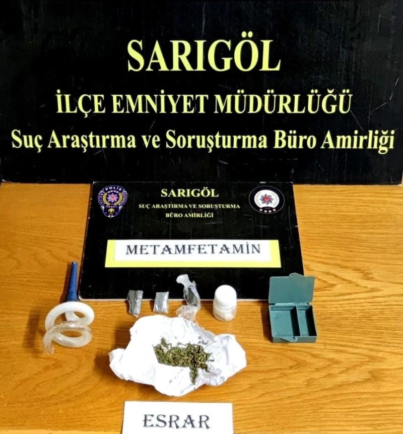 Manisa’nın Sarıgöl ilçesinde devriye görevi yapan polis ekiplerinin durdurduğu araçtan metamfetamin ve esrar maddesi ele geçirildi.