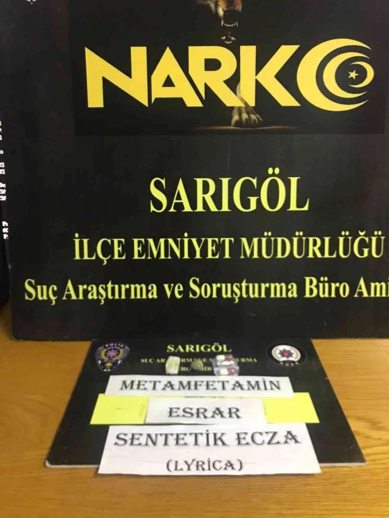 Manisa’nın Sarıgöl ilçesinde İlçe Emniyet Müdürlüğü Suç Araştırma ve Soruşturma Büro Amirliği ekipleri tarafından uyuşturucu madde ticareti yapan şahıslara yönelik çalışma gerçekleştirildi. Ekipler tarafından şüphe üzerine durdurulan V.Ç.’nin üst aramasında üzerinden 0.5 gram esrar maddesi, 0.9 gram metamfetamin ve 2 adet sentetik hap ele geçirildi. M.Ö. isimli şahıs üzerinde yapılan aramalarda ise 2.3 gram esrar maddesi ele geçirildi. Her iki şahsa da "Kullanmak İçin Uyuşturucu ve ya Uyarıcı Madde Bulundurmak, Satın almak veya Kabul Etmek" suçundan adli işlem yapıldı.