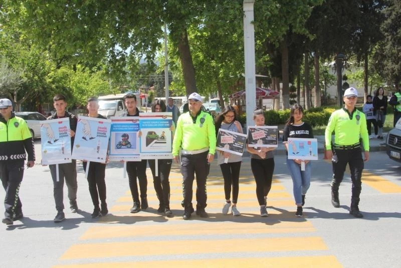 Karayolları Trafik Haftası etkinlikleri çerçevesinde Manisa’nın Sarıgöl ilçesinde emniyet ve jandarma ekipleri tarafından ilçede sürücülere broşür dağıtılırken yayalara uygulamalı eğitim ve bilgilendirmede bulunuldu.