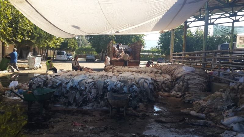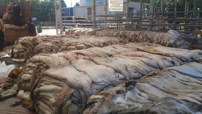 Manisa Büyükşehir Belediyesi Sarıgöl Canlı Hayvan pazarında deri bağışı toplayan Türk Hava Kurumu (THK) Sarıgöl Şubesi ilk günde 6 bin 225 kurban derisi topladı.