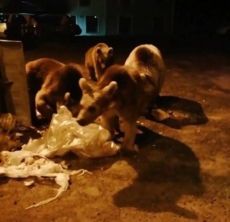 Ayılar gören vatandaşlar korkmadan ayılara yaklaşarak görüntü çekerken, bir yavru ayı ise çöp konteynerinde yiyecek aradı. Konteynerin içine giren ayı renkli görüntülere sahne oldu. Bir başka ayı ise yavrularıyla birlikte ilçe merkezinde yiyecek arardı, anne ayı evirdiği çöp konteynerinde yavrularının karınlarını doyurmaya çalıştı. Anne ayı ve yavruları karınlarını doyururken, bir yavru ayı ise ayağa kalkarak etrafı gözetledi. O anlar anbean kaydedildi.