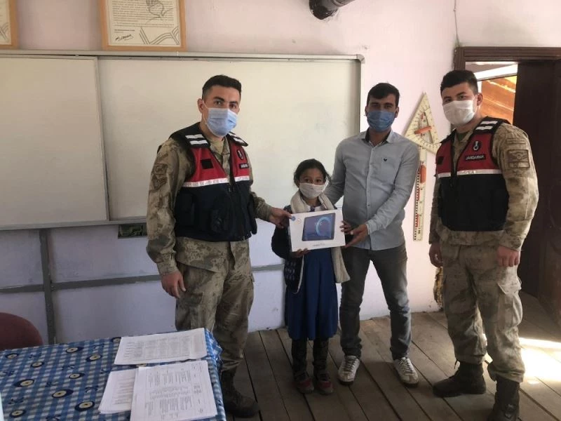 Tabletlerin ulaştığı okullarda eğitim gören öğrenciler, desteklerinden dolayı jandarma personeline teşekkür etti.