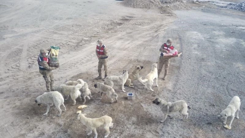 Sarıkamış’ta kısmen boşaltılan köyde sahipsiz köpeklere jandarma sahip çıktı