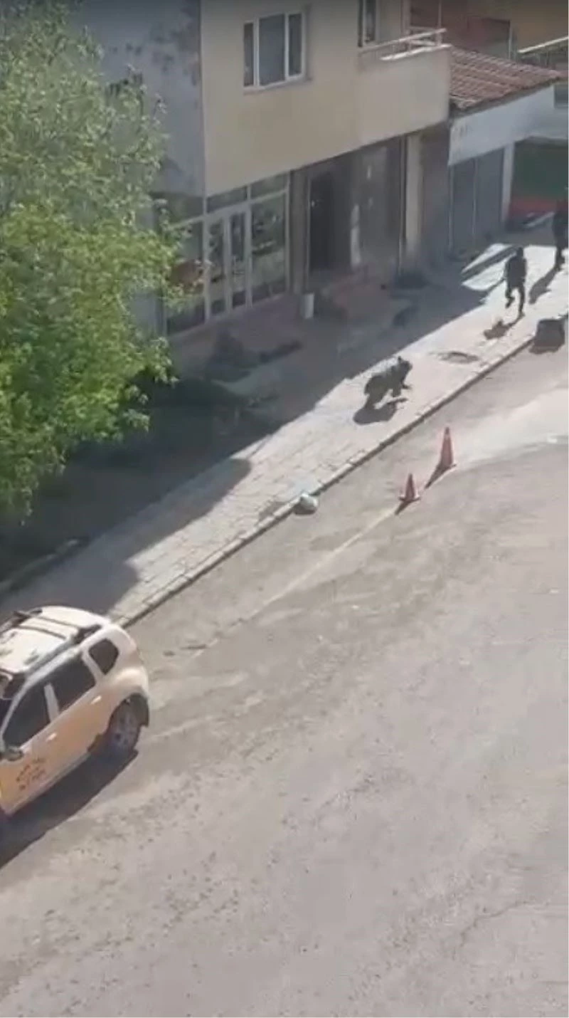 İlçe merkezine inen ve kısa süreliğine paniğe neden olan boz ayı daha sonra Halk Eğitim Merkezi bahçe duvarını aşarak ormanlık alana kaçtı. O anlar anbean cep telefonuyla kaydedildi.
