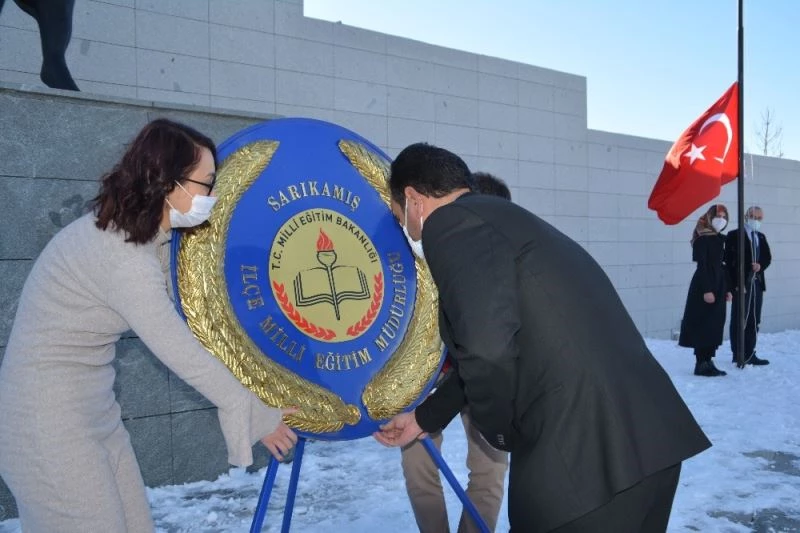 Tören Sarıkamış İlçe Hükümet Konağı önündeki Atatürk anıtına Milli Eğitim Müdürlüğü çelenk sunuldu.