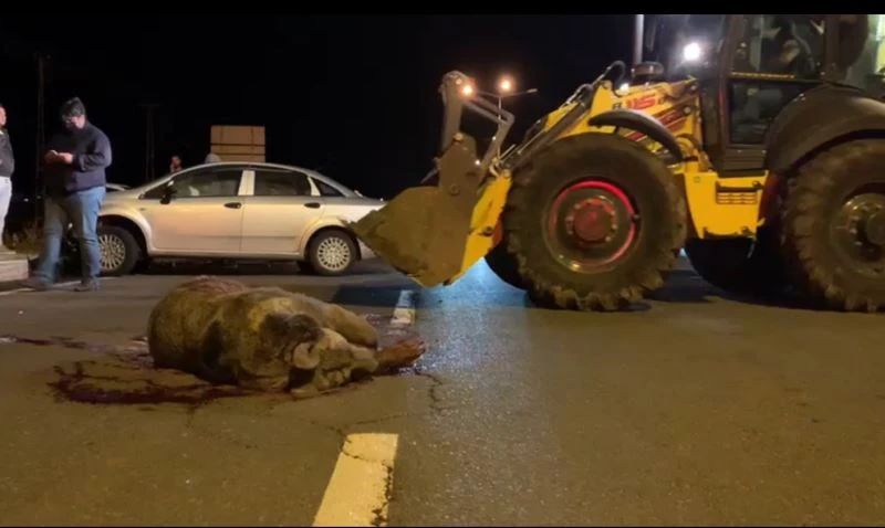 Kars’ta bir otomobilin çarptığı boz ayı telef oldu.