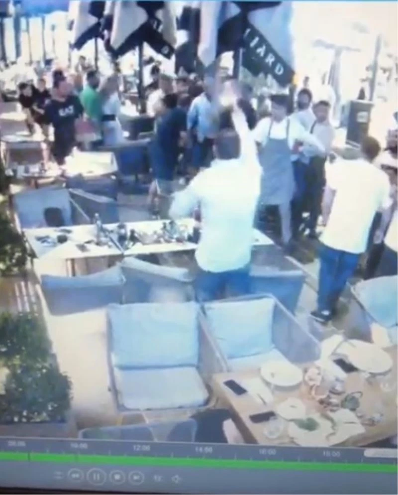 Öte yandan silahlı kavga anı güvenlik kamerasına yansırken, müşterilerin panik anları da cep telefonu kamerasına yansıdı. Panik anlarını çeken kişinin ise, hiçbir şey olmuyormuş gibi meyve suyunu içmesi dikkat çekti.