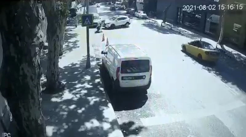 Sarıyer’de U dönüşü yapmaya çalışan cipe motosiklet çarptı. Motosiklette bulunan iki kişinin ölümden döndüğü anlar kameralara yansıdı.