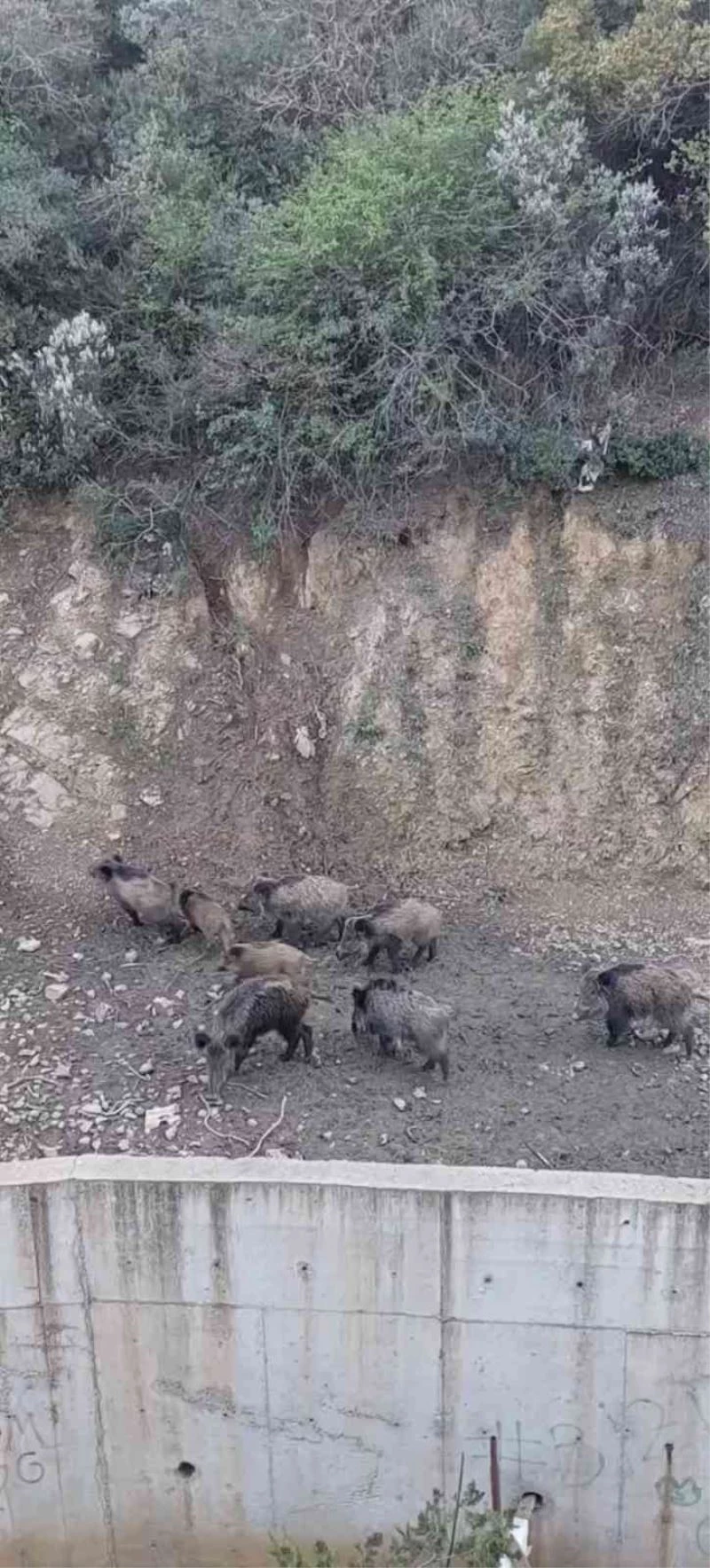 İstanbul Sarıyer’de ormanlık alanda yiyecek bulamayınca şehir merkezine kadar inen domuz sürüsü cep telefonu ile görüntülendi.
