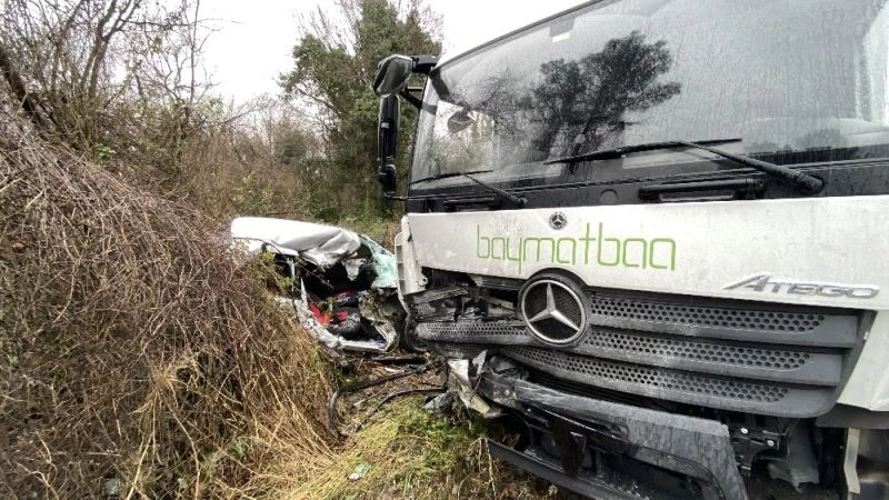 Sarıyer Bahçeköy orman yolunda yoğun yağış sonrası kayganlaşan yolda kontrolden çıkan otomobil, karşı yönden gelen kapalı kasa kamyonla çarpıştı. Kazada kullanılamaz hale gelen otomobilin sürücüsü kaldırıldığı hastanede hayatını kaybederken, arkadaşı ise yaralı olarak kurtuldu.