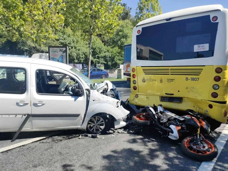 Sarıyer Maslak’ta İETT otobüsü, ticari araç ve motosikletin karıştığı zincirleme kazada motosiklette bulunan 2 kişi yaralandı. Hastaneye kaldırılan yaralıların durumunun iyi olduğu öğrenildi.
