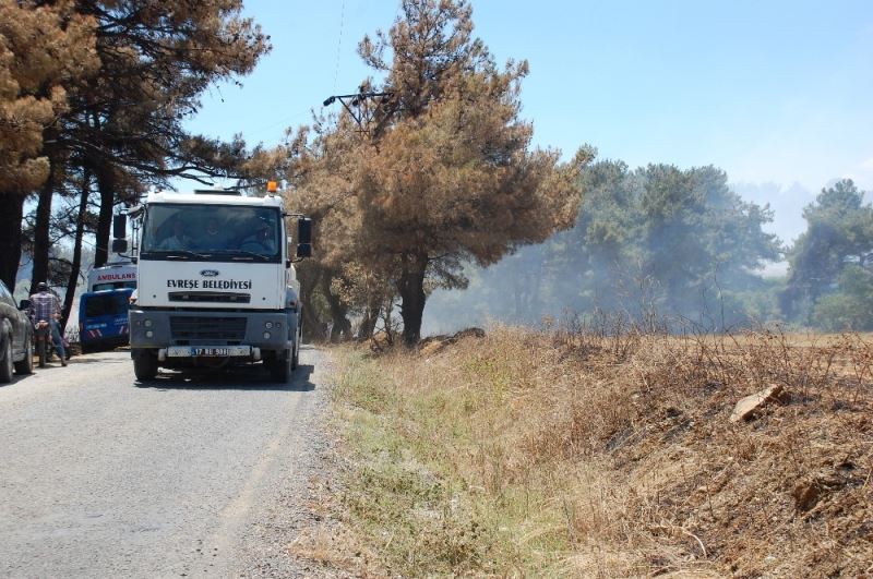 Edirne’nin Keşan ilçesine bağlı Sazlıdere köyü ve Çanakalle’nin Gelibolu ilçesine bağlı Adilhan köyü arasında bugün saat 12.30 sıralarında henüz bilinmeyen bir sebeple yangın çıktı.