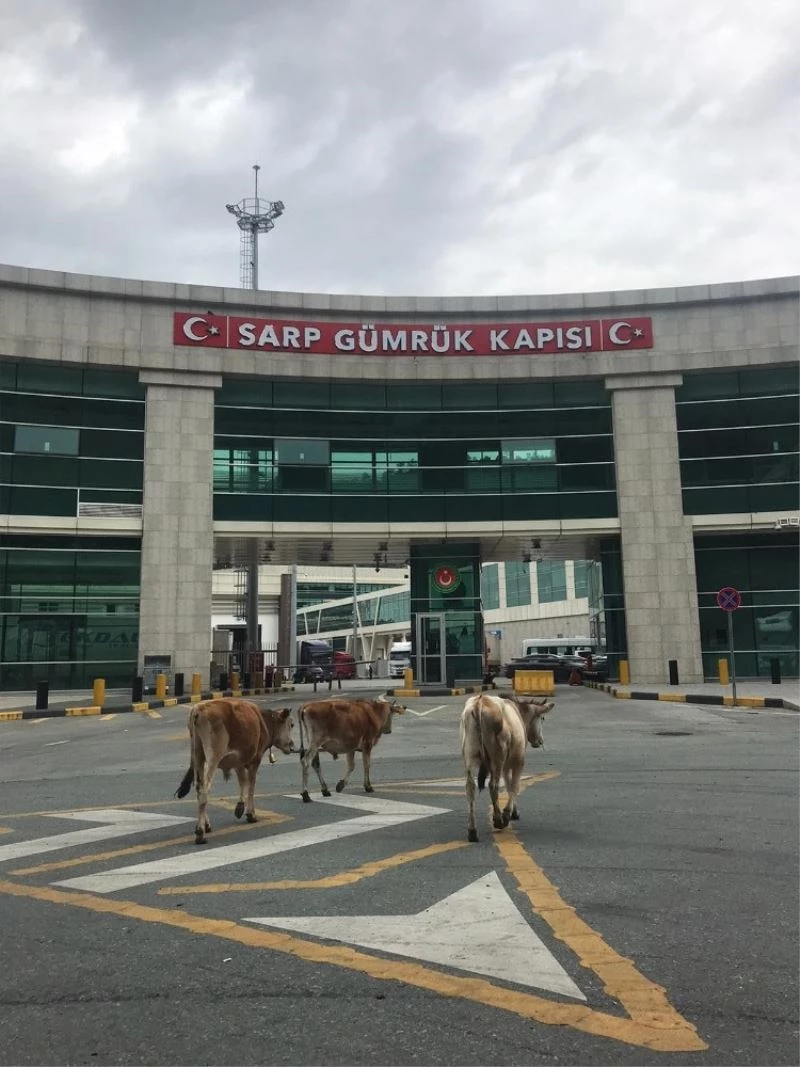 Türkiye’nin Kafkasya’ya açılan en önemli sınır kapısı durumunda olan Sarp Sınır Kapısı, Korona virüs (Covid-19) tedbirleri kapsamında yaya ve araç giriş çıkışlarına kapatıldı. Yoğunluğun azaldığı Sarp Gümrük Kapısı önünde, bölge halkının otlaması için bıraktığı büyükbaş hayvanlar başı boş dolaşınca gülümseten görüntüleri ortaya çıkardı.