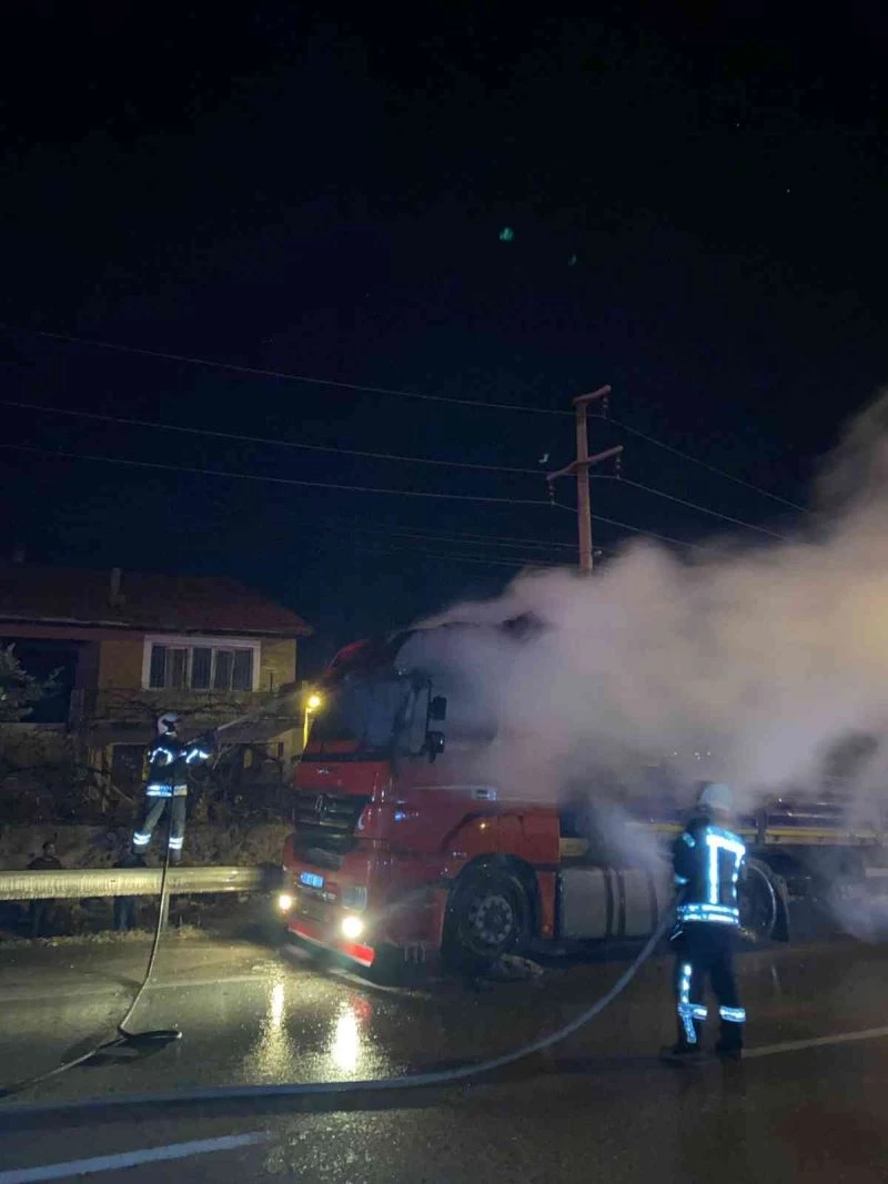 Şase yapan tırın kupası yanarak kullanılamaz hale geldi