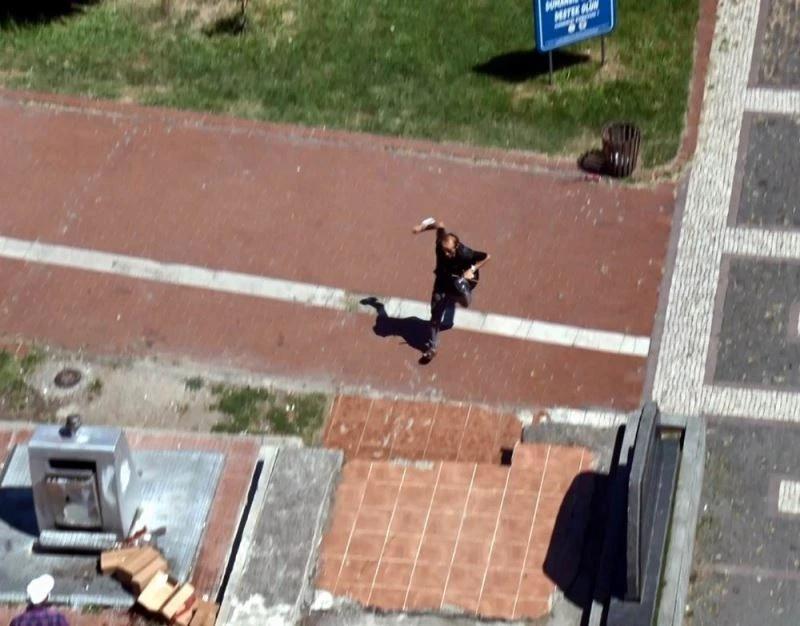 İlk başta uzaktan gelen siren sesine aldırış etmeyen sarhoş adam, 112 ambulansının siren sesinin yakından gelmesiyle birlikte heyecanlanmaya başladı. Ambulans sirenini polis sireni zanneden alkollü şahıs elindekileri çöp kutusuna atarak, yoldan geçenlere "Çekilin" diye bağırıp hızla kaçmaya başladı. Sarhoş şahsın şaşkın hareketleri ilginç görüntüler oluşturdu.