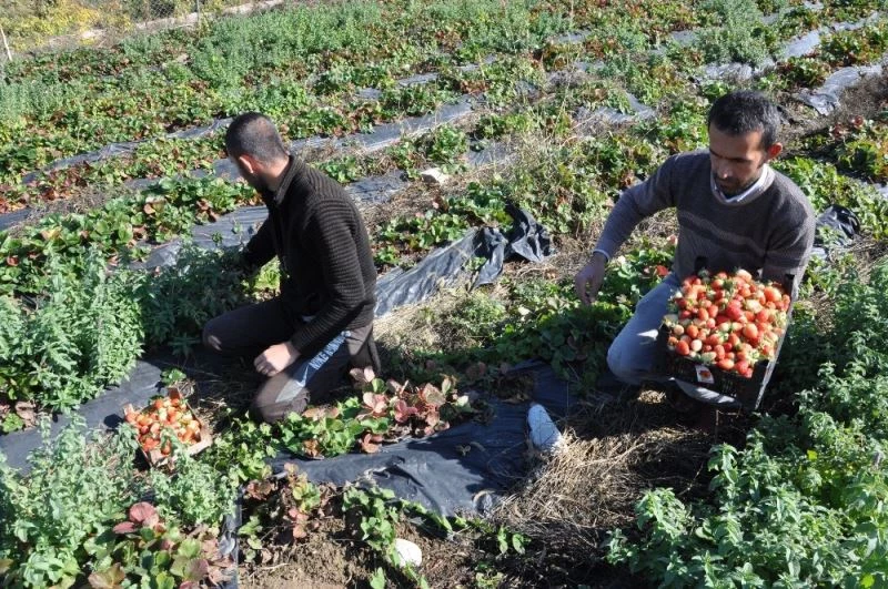 Batman’ın Sason ilçesinde devlet tarafından çiftçilere sağlanan yüzde 80 hibe desteğiyle ekilen organik çilekte yılın son hasadına başlandı.