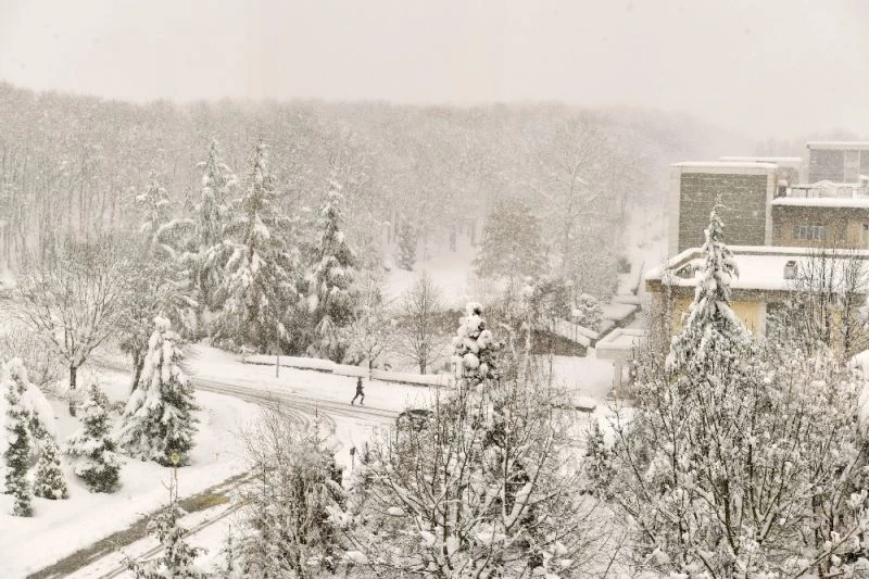 Sakarya’da etkili olan kar yağışının ardından Sakarya Üniversitesi (SAÜ) Esentepe Kampüsünde kartpostallık görüntüler oluştu.