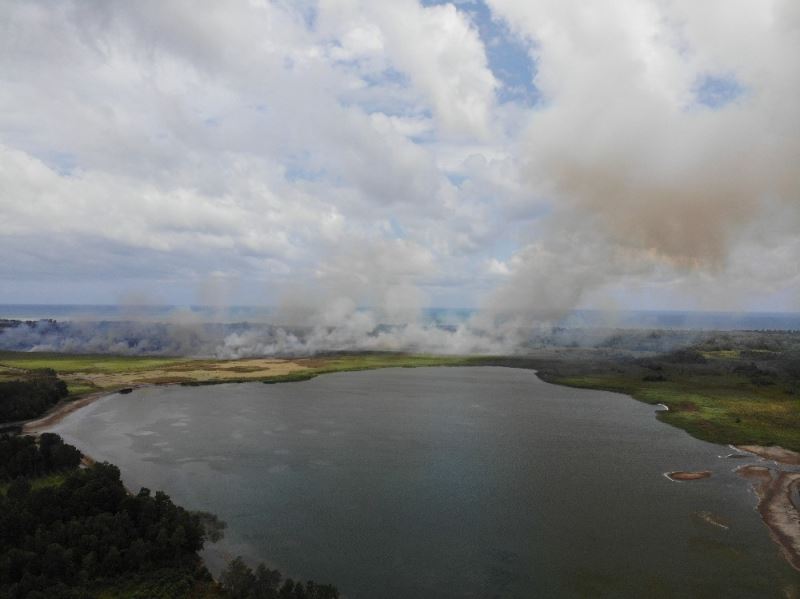 Samsun’un Terme ilçesinde sazlık alanda çıkan yangında yaklaşık 200 hektar alan zarar gördü.