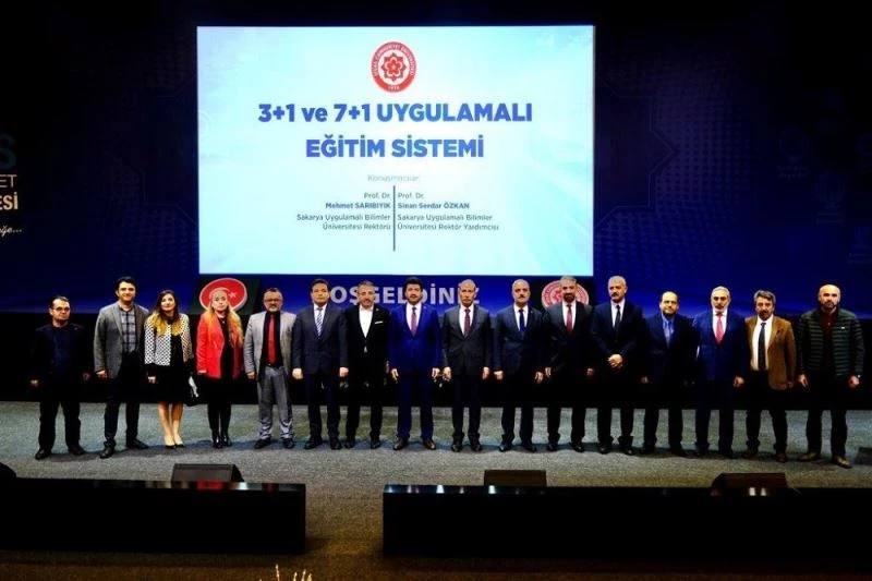 SCÜ’ de yapılan 3+1 ve 7+1 eğitim modeli tanıtımında ön lisans ve lisans öğrencilerinin 4 ve 8 dönemden oluşan eğitim takvimlerinden 1 döneminin bir iş yerinde geçirmeleri amaçlanıyor. Kültür Merkezi Kadı Burhaneddin Salonu’nda düzenlenen Sakarya Uygulamalı Bilimler Üniversitesi (SUBÜ) Rektörü Prof. Dr. Mehmet Sarıbıyık ve Rektör Yardımcısı Prof. Dr. Sinan Serdar Özkan’ın konuşmacı olduğu programa SCÜ Rektörü Prof. Dr. Alim Yıldız, Rektör Yardımcıları, Rektör Danışmanları, dekanlar, müdürler, akademisyenler ve öğrenciler katıldı. SUBÜ Rektörü Prof. Dr. Sarıbıyık ve Rektör Yardımcısı Prof. Dr. Özkan, 3+1 ve 7+1 eğitim modeliyle ilgili sunum gerçekleştirerek, bu modeller aracılığıyla iş dünyası ile olan iş birliklerinin güçlendirildiği ve öğrencilerin de işletmelerde aldıkları pratik eğitimle mezun olduktan sonra kolayca iş sahibi olabilecekleri de vurgulandı.
