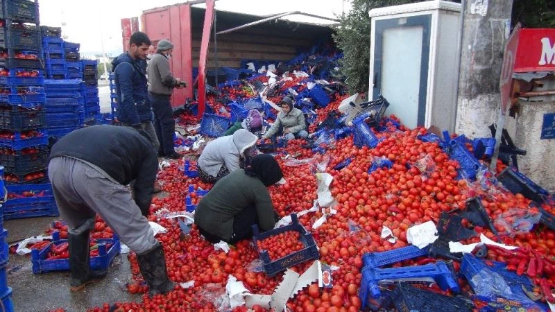 Kaza nedeniyle tırdaki sebzelerin yola savrulması üzerine olay yerine çağrılan tarım işçileri sağlam sebzeleri tekrar kasalara istif etti. Zedelenen sebzeler ise tarım işçileri tarafından evlerine götürüldü.