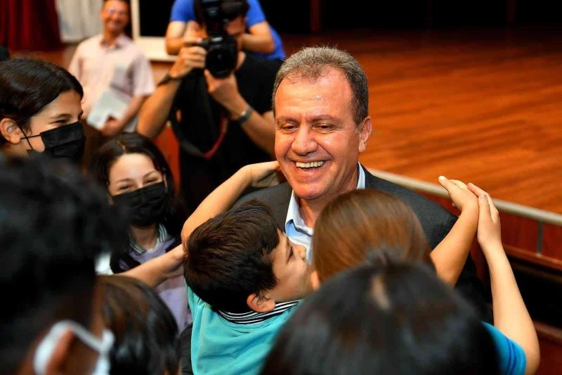 Konuşmasının ardından Başkan Seçer’e plaket takdim edildi. Başkan Seçer, günün anısına sahneden çocuklarla birlikte öz çekim yaptı.