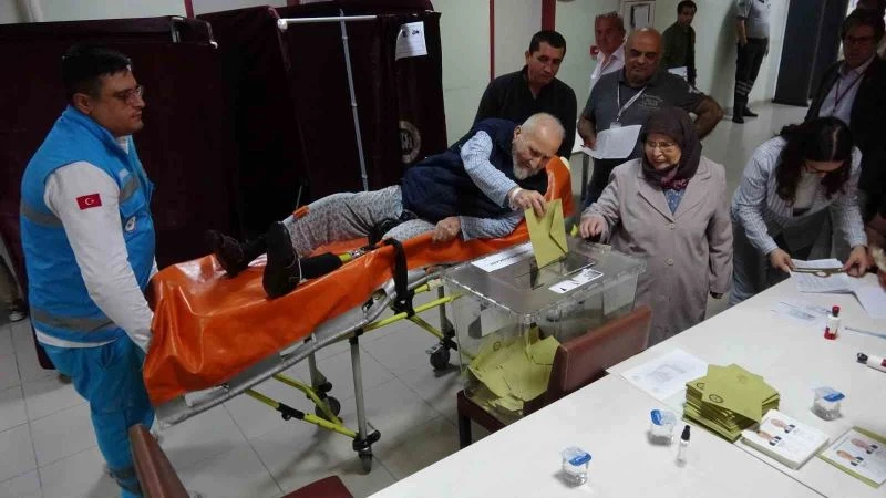 Çanakkale’de Cumhurbaşkanlığı 2. Tur seçimlerinde Çanakkale Onsekiz Mart (ÇOMÜ) Hastanesinde tedavi gören 82 yaşındaki İsmail Avcı, İl Sağlık Müdürlüğü Evde Sağlık Hizmetleri ekipleri refakatinde Sosyal Güvenlik İl Müdürlüğüne sedye ile gelerek 1337 nolu sandıkta oyunu kullandı. Oy kullanma işlemi sonrası İsmail Avcı, “Allah hayırlısı hangisiyse onu versin” dedi.