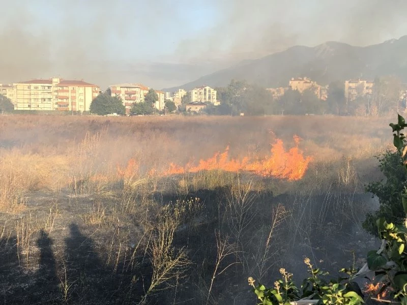 Bursa şehir merkezinde bulunan otlar cayır cayır yandı. Yangından çıkan dumanlar, binlerce aracın geçtiği İzmir yolunu beyaza bürüdü. Alevlere ve dumanlara aldırış etmeyen 2 genç çevredekiler tarafından büyük takdir topladı.