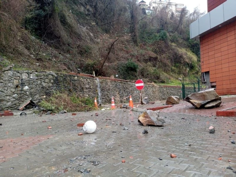 Zonguldak’ta dün 100. Yıl Belediye Terminali’nin üst kısmında sağanak yağış ve fırtına nedeniyle heyelan meydana gelmişti. Heyelan nedeniyle dik yamaçtan kopan kaya parçaları ve toprak, terminalin içine doğru düşmüştü. Yağışlı havanın devam etmesi nedeniyle öğlen saatlerinde bugün yine aynı yerde ikinci bir heyelan meydana geldi. Heyelan nedeniyle kaya ve toprak parçaları terminalin içerisine kadar düştü. Yaşanan heyelan sırasında terminal esnafı ve yolcular ikinci bir şok yaşadı. Öte yandan şans eseri heyelanda can kaybı yaşanmazken terminalde maddi hasar oluştu. Zonguldak Belediyesine bağlı ekipler olay yerine gelerek heyelanın olduğu yere güvenlik şeridi çekti.