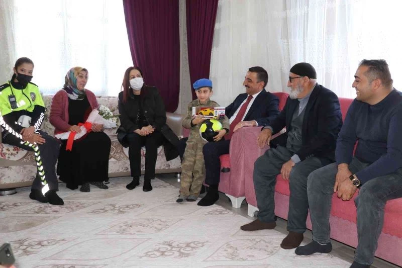 Vali Hacıbektaşoğlu, daha sonra şehit Mehmet Eren’in ailesini ziyaret ederek, sorun ve taleplerini dinledi. Şehidin çocuklarıyla yakından ilgilenerek, çeşitli hediyeler verdi. Şehit eşinin Dünya Kadınlar Gününü kutladı. Şehitleri rahmet ve saygıyla anan Vali Hacıbektaşoğlu, şehit ailelerine minnet duygularını iletti.