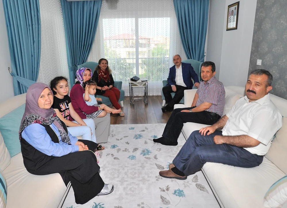 Osmaniye Valisi Ömer Faruk Coşkun ve eşi Sevilay Coşkun, Şehit Polis Memuru Hayrettin Mennan ve Şehit Jandarma Astsubay Kıdemli Çavuş Mustafa Sefa Kök`ün ailelerini, Ramazan Bayramı dolayısıyla evlerinde ziyaret etti. Ziyarette Aile Çalışma ve Sosyal Hizmetler İl Müdürü Hamit Coşkun da yer aldı. İlk olarak Şehit Polis Memuru Hayrettin Mennan`ın eşi Selver Mennan ve oğlu Turan Mennan`ı ziyaret ederek bir süre görüşen Vali Coşkun, daha sonra Şehit Jandarma Astsubay Kıdemli Çavuş Mustafa Sefa Kök`ün eşi Yasemin Kök`ü ziyaret etti. Şehit ailelerinin Ramazan Bayramını kutlayan Vali Coşkun, şehitlere Allah`tan rahmet ailelerine de sabır dileklerini iletti. Şehit ailelerinin herkesin kalbinde müstesna bir yere sahip olduğunu belirten Vali Coşkun, "Devletimiz ve milletimizin bölünmez bütünlüğü için canlarını feda etmiş şehitlerimizin, canlarını hiçe saymış gazilerimizin haklarını ne yapsak ödeyemeyiz. Onların aileleri bizlere birer emanettir. Bugüne kadar her zaman onların yanında olduk bundan sonra da olmaya devam edeceğiz. Bu vesile ile tüm şehitlerimize ve ebediyete intikal etmiş gazilerimize Allah?tan rahmet diliyor, gazilerimize minnet ve şükranlarımı sunuyorum."diye konuştu. Şehit aileleri ziyaretten duydukları memnuniyeti ifade ederek, nazik ziyareti için Vali Coşkun`a teşekkür ettiler. /İbrahim EMÜL