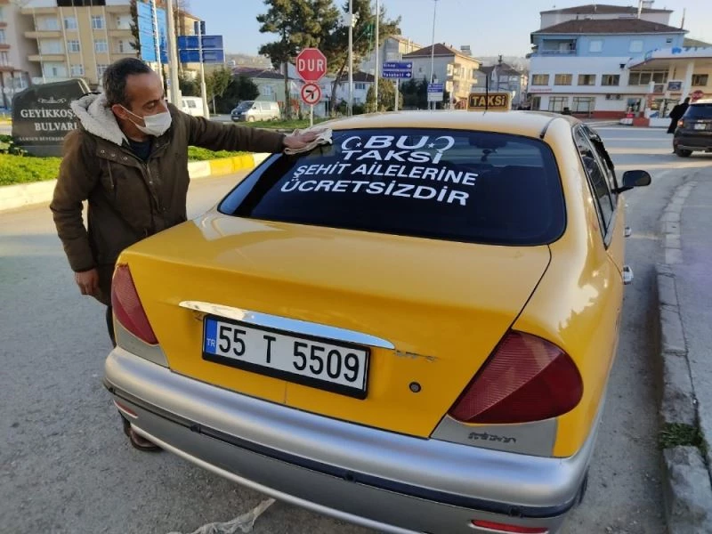 Samsun’un Alaçam ilçesinde taksicilik yapan Durmuş İleri, aracına binen şehit ailelerinden ücret almıyor.