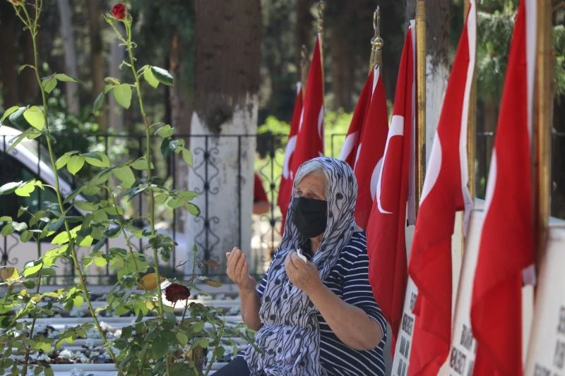 İçişleri Bakanlığının dün yayınladığı genelgeyle şehit aileleri Arife gününde ve bayramda sokağa çıkma yasağından muaf tutulmuştu. Şehit aileleri de bugün çocuklarının mezarlarını ziyaret ederek, bir bayramı daha onlarsız geçirmenin üzüntüsünü yaşadılar. Şehit aileleri, evlatlarının mezarları başında gözyaşları içinde dualar ederken, İl Müftülüğünde görevli hocalarda Kuran-i Kerim tilaveti okudu. Duygusal anların yaşandığı ziyarette şehit ailelerini, protokol üyeleri teselli etmeye çalıştı. 5 yıl önce Şırnak’taki operasyonda el yapımı patlayıcının teröristler tarafından infilak ettirilmesi sonucunda şehit olan Sağlık Astsubay Murat Erdi Eker’in annesi Aynur Eker, her bayramda çok kötü olduklarını belirterek, “Geliyoruz bakıyoruz, onun olmayışı çok acı. Ancak yapacak bir şey yok, Allah’ım onları şefaatine nail eylesin. Herkese teşekkür ediyorum bizimle sürekli ilgileniyorlar. Allah güvenlik güçlerimize güç, kuvvet versin. Allah teröristleri ıslah etsin yada perişan etsin” dedi.