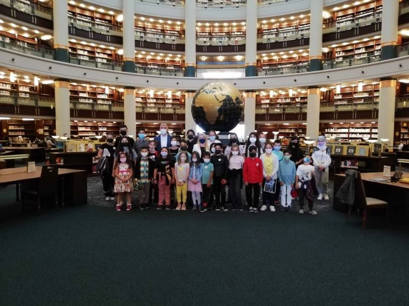 Kütüphane ziyaretiyle ilgili düşüncelerini paylaşan Ata Alp Kocaman, ”7 yaşındayım. İlk önce yemek yedik, sonra da gezdik. Robotlara baktık, robot yürüyordu, düşünce ayağa kalkabiliyordu. Bir şut attı gol oldu. Bizim evdekinden daha çok kitap var burada. İyi hissettim. Burası da çok güzel. Burada çok kitap var. Yine gelirim” dedi.