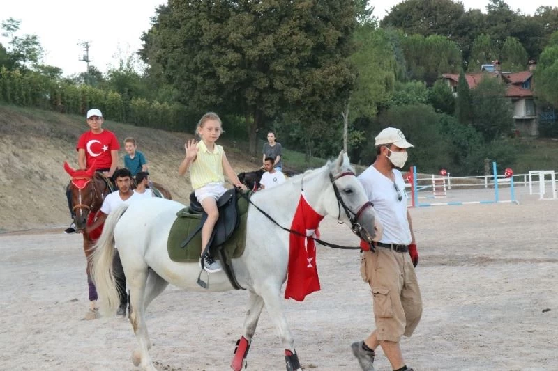 Sakarya’nın Serdivan ilçesinde bulunan Sakarya Atlı Spor Köyü, 30 Ağustos Zafer Bayramı dolayısıyla şehit yakınları ve çocuklarına kapılarını açarak gönüllerince eğlenmelerini sağladı.