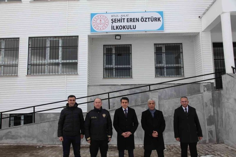 İlçenin Kulaksız Mahallesine yapılan 20 derslikli okula Şehit Eren Öztürk’ün adı verilirken, ilçe merkezinde yapılan 4 derslikli bir diğer okula ise Hayme Hatun Anaokulu adı verildi. Ahlat Kaymakamı Fikret Dağ yeni yapılan okulu ziyaret ederek, Milli Eğitim Müdürü Mutluk Özden’den ve okul müdürü Muammer Akyol’dan bilgi aldı. Bir süre okulu gezerek incelemelerde bulunan Kaymakam Dağ, gazetecilere yaptığı açıklamada yeni okulun gayet güzel olduğunu belirterek, “İlçemize yeni yapılan 20 derslikli ilk ve ortaokulumuza şehidimiz Eren Öztürk kardeşimizin isminin verilmesi bizleri ziyadesiyle mutlu etmiştir. Bu vesileyle Eren kardeşimiz başta olmak üzere, tüm şehitlerimizi ve gazilerimizi rahmetle yâd ediyorum. Yeni okulumuz hayırlı olsun” dedi.