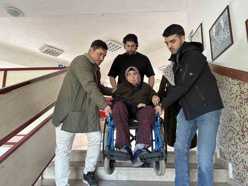 Kıbrıs şehidinin eşi 72 yaşındaki yürüme engeli bulunan Hanım Tekin, kolluk kuvvetleri ve vatandaşların yardımıyla sandık başına taşındı.