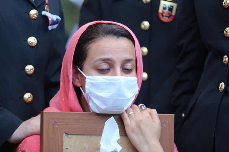 Siirt’in Pervari ilçesinde askeri aracın devrilmesi sonucu şehit olan 27 yaşındaki Jandarma Astsubay Çavuş Celal Özcan, son yolculuğuna uğurlandı. Askeri personel olan Ayça Özcan, eşinin fotoğrafını bir an olsun elinden bırakmadı.