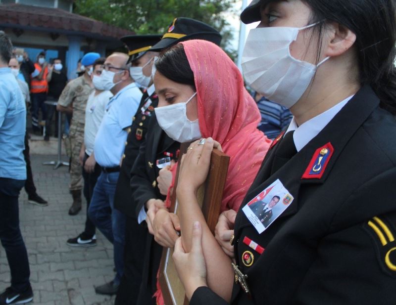 Maskeli askerlerin karşıladığı şehidin Türk bayrağına sarılı naaşı tören alanına getirildi. Kendisi de askeri personel olan şehidin eşi Ayça Özcan eşinin fotoğrafını bağrına basarak yürüdü. Şehidin annesi Ayşe Özcan da askerlerin kollarında tören alanına geldi. Namaz boyunca Ayça Özcan eşinin fotoğrafını kucağından bırakmadı.