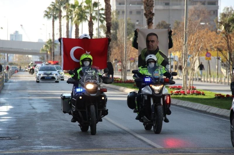 İzmir Adliyesine yönelik düzenlenen terör saldırısında 4 yıl önce şehit düşen polis memuru Fethi Sekin için mesai arkadaşları tarafından 50 araçlık kortej oluşturuldu. Konvoyu gören İzmirliler, o anları cep telefonu kameralarına kaydetti.