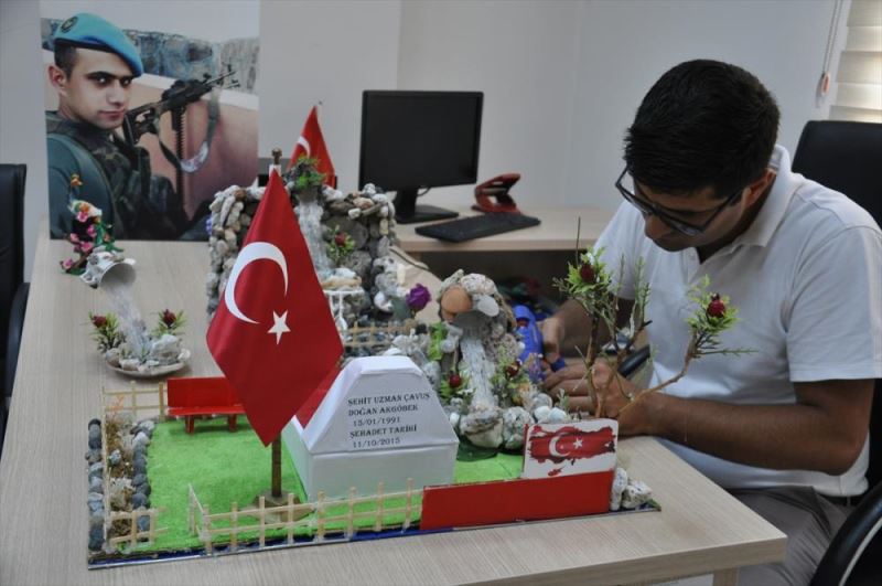HATAY (AA) - Hatay'da, sehit Jandarma Uzman Onbasi Dogan Akgöbek'in agabeyi Orhan Akgöbek, kardesinin mezarinin maketini yapti.
