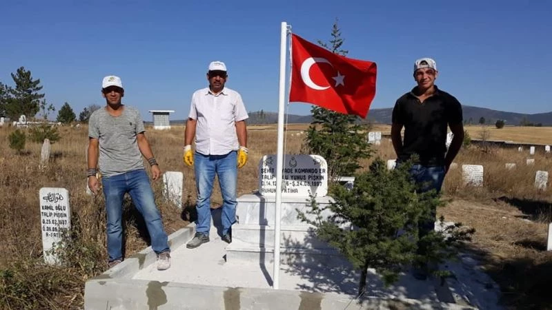 Şehit mezarlarının bakımı yapıldı bayrakları değiştirildi