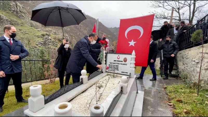 Yaz tatilini geçirmek üzere memleketi Gümüşhane’ye dönerken terör örgütü PKK mensupları tarafından kaçırılarak 23 yaşında şehit edilen sınıf öğretmeni Necmettin Yılmaz, 24 Kasım Öğretmenler Günü’nde kabri başında anıldı.